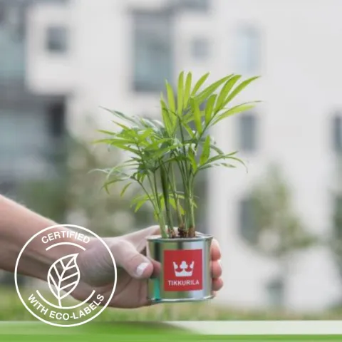 Iepriekšējie īpašnieki sienām bija izvēlējušies gaiši pelēko toni, kas likās pārāk blāvs un vēss. Ideja izmantot tumšākus toņus radās no mūsu nesenā Itālijas ceļojuma, kur skatienu piesaistīja grezni sarkanās akmens un marmora virsmas, kas Itālijā ir ļoti populāras. Mēs izvēlējāmies spēcīgos, bet elegantos Driftwood V484, Wrought Iron Y500, Beetroot M425 un Etruscan S471 toņus no "Minerals" kolekcijas.