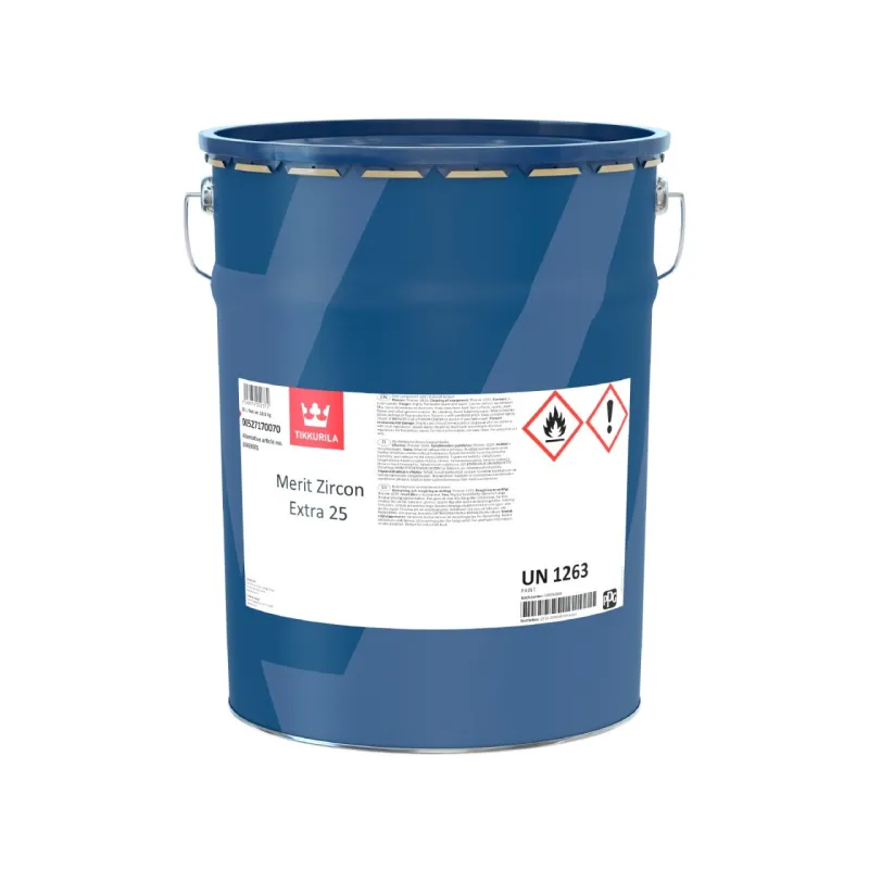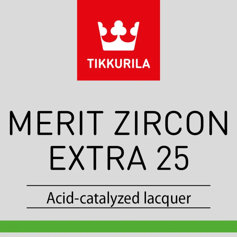 Merit Zircon Extra 25 ir augstas kvalitātes aizvietojums nitrocelulozes lakām. Tās sausais atlikums ir lielāks, un izturība pret ķimikālijām ievērojami labāka salīdzinājumā ar pārsvarā lietotajām nitrocelulozes lakām.