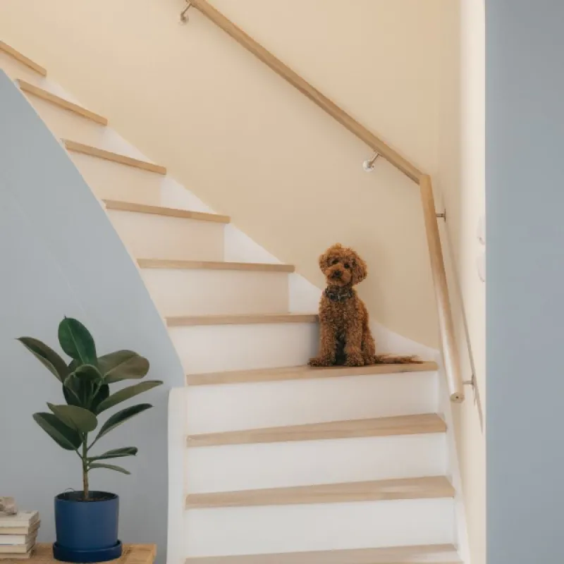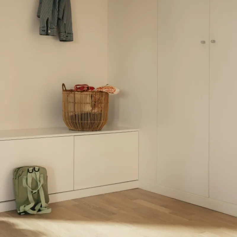 Ap sauli mirdz maiga un bāla gaisma. Iekļaujošs, silti balts tonis, kas rada mierīgu atmosfēru.