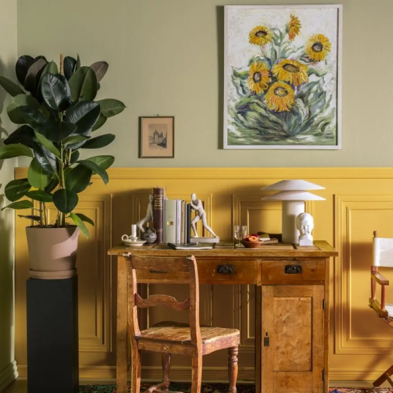 Saules stari spīd cauri olīvkoka lapām. Maigs zaļais tonis, kas pāriet dzeltenajā, un piesaista skatienu. Izmantojiet šo toni, lai radītu telpā harmonisku atmosfēru.