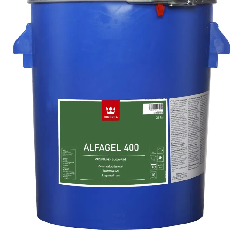 Silikona bāzes, sārmizturīgs aizsarglīdzeklis, kas labi iesūcas virsmā. (SILKO 3.252) Novērš lietus un ūdens šļakatu kapilāro uzsūkšanos konstrukcijā. Atļauj izdalīties ūdens tvaikiem, kas nāk no konstrukciju iekšpuses. Alfagel 400 aizkavē sāļu nonākšanu uz konstrukcijas virsmas. Novērš sala bojājumus. Tiksatropo, želejveida Alfagel 400 var uzklāt biezā slānī (uzklājot vienā kārtā) pat uz vertikālām virsmām un zem tiltu konstrukcijām, jo tas nenopilēs un netecēs.